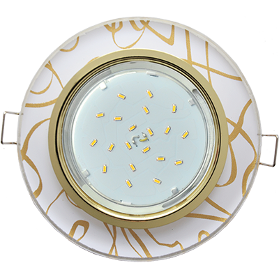 Тонкий встраиваемый стеклянный светильник Ecola GX53 Н4. Цвет: золото - золото на белом.