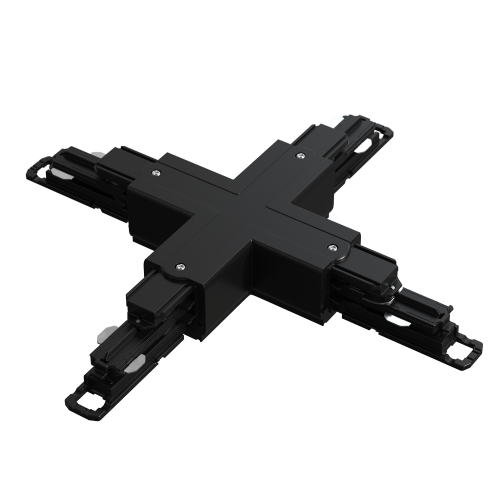 Х-образный соединитель с возможностью подачи питания для управляемого шинопровода Master Track MT3FD. Обеспечивает надежное механическое и электрическое соединение при создании любой конфигурации шинопровода.