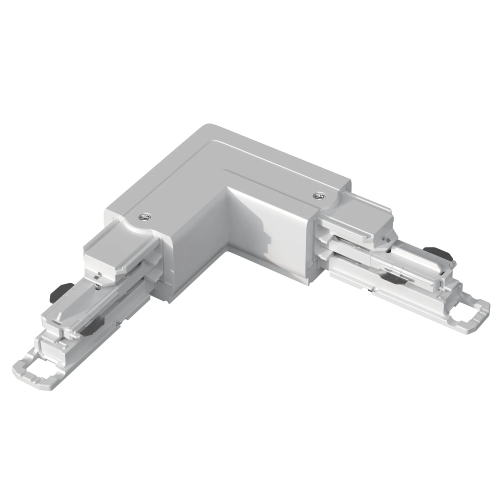 Угловой соединитель 90° правый с возможностью подачи питания для управляемого шинопровода Master Track MT3FD. Обеспечивает надежное механическое и электрическое соединение при создании любой конфигурации шинопровода.
