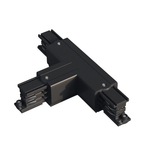 Т-образный соединитель левый с возможностью подачи питания для шинопровода Master Track MT3F. С возможностью переключения между L1/L2 конфигурациями (MT3F-36 / MT3F-40). Элемент обеспечивает надежное механическое и электрическое соединение при создании любой конфигурации шинопровода.