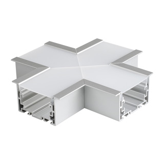 Угол S2-LINIA69-F-X90 крестовой Крестовой угол в сборе, для соединения 4-х профилей S2-LINIA69-F под прямыми углами 90°. Экран образует линию "Х" на плоскости. В комплекте матовый экран, соединители. Размеры 150х150мм.