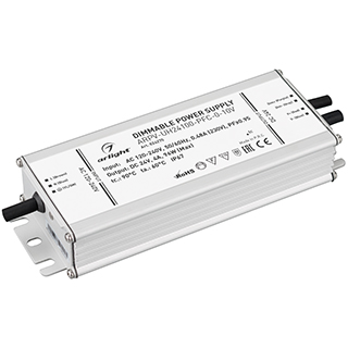Блок питания ARPV-UH24100-PFC-0-10V (24V, 4.0A, 96W) Блок питания для светодиодных лент с управлением 0-10V, корпус металл IP67, мощность 96 Вт; Входное напряжение 120-240V; Выход 24V 4A, PF>0,95; Размер 161x67.5x33,5 мм. Гарантия 7 лет.