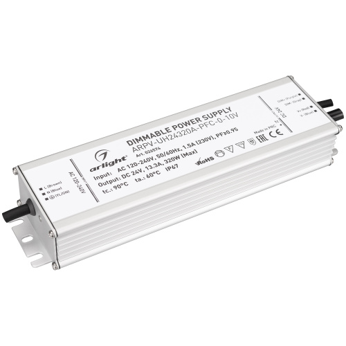 Блок питания ARPV-UH24320A-PFC-0-10V (24V, 13.3A, 320W) (Arlight, IP67 Металл, 7 лет)