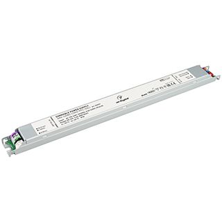 Блок питания ARV-24080-LONG-PFC-DALI (24V, 3.4A, 80W) Диммируемый блок питания 24V, ток 3,4А, 80Вт, с управлением DALI, c функцией PUSH-DIM, с корректором мощности, PF>0,95. Тонкий металлический корпус IP20. Вход: 120-240VAC. Выход: 24VDC 3.4A. Размер 378х30х21 mm. Совместимость со стандартом EMC. Гарантия 7 лет.