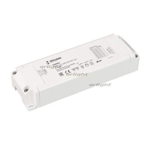 INTELLIGENT ARLIGHT Диммер TUYA-201-60W-DIM-WF-SUF (230V, 433MHz, 900-1500mA) (IARL, IP20 Пластик, 3 года) Диммер одноканальный, для светодиодных светильников. Выбор значения выходного тока осуществляется подстроечным резистором на плате. Вход 220-240V AC, PF>0.95 выход 900-1500mA@24-50V DC (в зависимости от вых. тока), мощность 60W. Низкий пусковой ток <5А@100mks. Защита от КЗ на выходе, перегрузки, пер