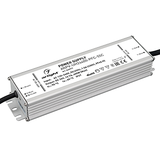 Блок питания ARPV-UH24400-PFC-55C (24V, 16.7A, 400W) (Arlight, IP67 Металл, 5 лет) Источник напряжения с гальванической развязкой для светодиодных изделий. Предназначен для работы в условиях Крайнего Севера с запуском до -55С. Входное напряжение 120-240 VAC. Выходные параметры: 24 В, 16.7 А, 400 Вт. Встроенный PFC >0,95. Герметичный алюминиевый корпус IP 67. Рабочая температура -5