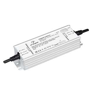 Блок питания ARPV-LG-12100-PFC-VCA (10.5-13.5V, 8.33A, 100W) (Arlight, IP65 Металл, 5 лет) Регулируемый источник напряжения с переходом в источник тока на максимальной нагрузке с гальванической развязкой для светодиодных изделий. Входное напряжение 110-277 VAC. Выходные параметры: в режиме постоянного напряжения 10.5-13.5 В (установка по умолчанию 12В), 12.5 А, 100 Вт, в режиме постоянног