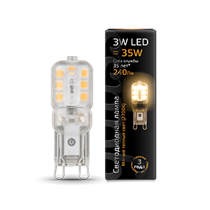 Лампа Gauss LED G9 AC220-240V 3W 240lm 2700K пластик 1/10/200