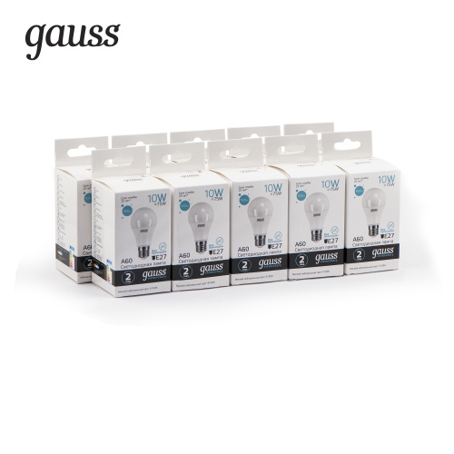 Лампа Gauss LED 10вт 230в Е27 белый Elementary 23220 (Лампа Gauss Elementary A60 10W 920lm 4100K Е27 LED 1/10/50)