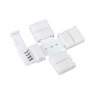 Соединитель 4X FIX-RGB10C Разветвитель крестовой с разъемами на фиксаторах, для соединения RGB лент шириной 10мм. Максимальный допустимый ток 4А. Не рекомендуется соединять длинные отрезки лент!