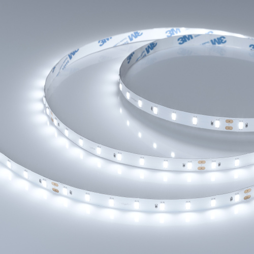 Лента ULTRA-C64-10mm 24V White6000 (14.4 W/m, IP20, 5630, 5m) (Arlight, высок.эфф.160 лм/Вт) Светодиодная высокоэффективная лента ULTRA серии C64. Светодиоды 5630, 64 шт/м, белая плата шириной 10 мм, скотч 3M. Цвет БЕЛЫЙ 6000K, высокая световая эффективность 160 лм/Вт, индекс цветопередачи CRI>80, угол 120°. Питание 24 В, мощность 14.4 Вт/м (72 Вт на 5 м). Размеры 5000x10x1.3 мм. Мин. отрезок 125 мм, 8 светодиодов. Цена за 1 м. Обязательна установка на профиль.Светодиодная лента ULTRA серии C64 с высокой световой эффективностью 160 лм/Вт, шириной 10 мм, мощностью 14.4 Вт/м, белого цвета