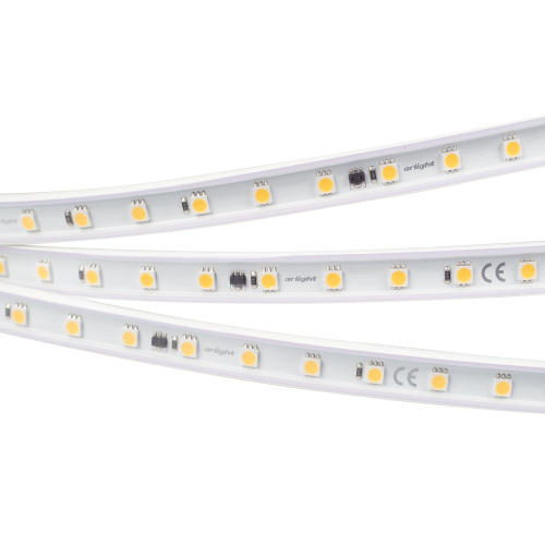 Лента ARL-50000PV-230V Day4000 (5060, 54 LED/m, WP2) Герметичная IP65 (в PVC трубке, тип WP2) лента AC230V, светодиоды smd 5060, 54шт/м (2700шт на 50м), без скотча, крепление на скобы или профиль (не входят в комплект). Цвет ДНЕВНОЙ 3800-4300K. Питан