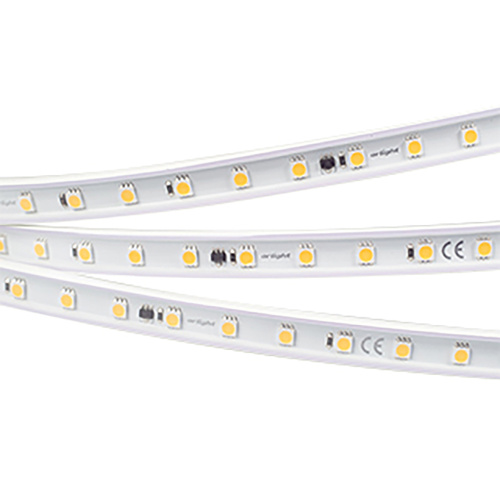 Лента герметичная ARL-PV-B54-15.5mm 230V Warm3000 (8 W/m, IP65, 5060, 10m) (ARL, -) Светодиодная лента ARL-PV-B54 AC230V, герметичная IP65 (PV-трубка ПВХ экструзия). Светодиоды 5060, 54 шт/м (540 шт на 10 м), белая плата, ширина 15.5 мм, скотч 3M. Цвет ТЁПЛЫЙ 3000 K, цветопередача CRI>90, угол 120°. Питание 230V, мощность 8 Вт/м (80 Вт на 10 м). Размеры 10000x15.5x6 мм. Мин.отрезок