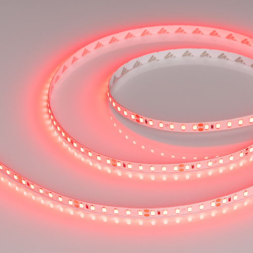 Лента RT-A120-8mm 24V Red (9.6 W/m, IP20, 2835, 5m) (Arlight, 9.6 Вт/м, IP20) Гибкая лента LUX, светодиоды 2X smd 2835, 120шт/м (600шт на 5м), белая плата 8мм, скотч 3М. Цвет КРАСНЫЙ. Питание 24В, мощность 9,6 Вт/м (48 Вт на 5м), угол 120°. Размеры 5000х8х1,8мм. Мин.отрезок 50мм (6 LED). Цена за 1м.Создание декоративной подсветки. Оформление наружной рекламы и витрин.