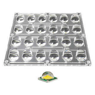 Блок линз 24BST-E (130x65°, 24x LED) Блок линз 4х6 для светодиодов Emitter (24шт). Размер: 120x120 мм, H=10.2 мм. Угол: 130 x 60°. Используется с платой STB 24, 120. Крепление под винт.