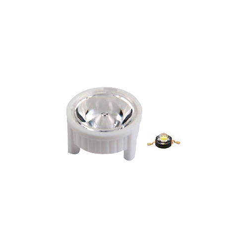 Линза 10DH2W (10°, Emitter, white) 10° линза для светодиода 'Emitter'. Поверхность прозрачная. Белый держатель (3 ножки, под винт). Габариты 23*14,1 mm