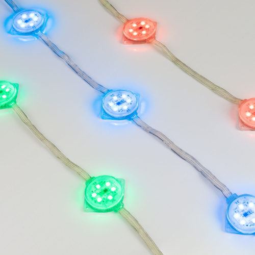 Флэш-модуль ARL-PRO-D50-6LED RGB 12V Прозрачный Герметичный управляемый RGB-Модуль (6 светодиодов smd 5050, прозрачный экран, угол 120 град), управляется контроллерами HX-805 и HX-801SE. 12В, 1.44Вт, IP68. Габариты D50xH13,6 мм. Расстояние между цент