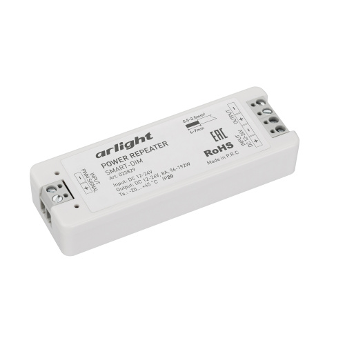 Усилитель SMART-DIM (12-24V, 1x8A) Одноканальный усилитель для диммеров (12-24VDC). Питание 12-24VDC. 1 канал, ток нагрузки 1x8A, мощность нагрузки 96-192W. Размер 97x33x18 мм. Гарантия 2 года с даты продажи.