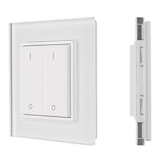 Панель Knob SR-2833K2-RF-UP White (3V, DIM,2 зоны) Двухзонный накладной диммер-выключатель, работает по радиоканалу (короткое нажатие - вкл, длинное нажатие - диммир-е). Используется с диммерами серии SR-1009х. Питание - литиевая батарейка 3V CR2430.
