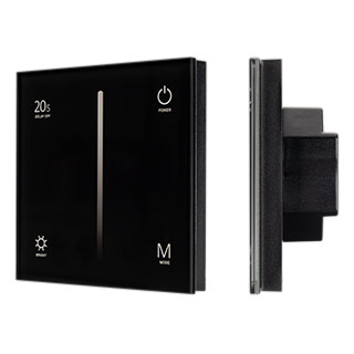 Панель Sens SMART-P40-DIM Black (100-240V, 1.2A, TRIAC) Встраиваемая сенсорная стеклянная панель 2.4 ГГц, цвет чёрный. Для управления одноцветными источниками света (TRIAC). Управление яркостью с помощью сенсорной полосы. Работает в режиме master/sla